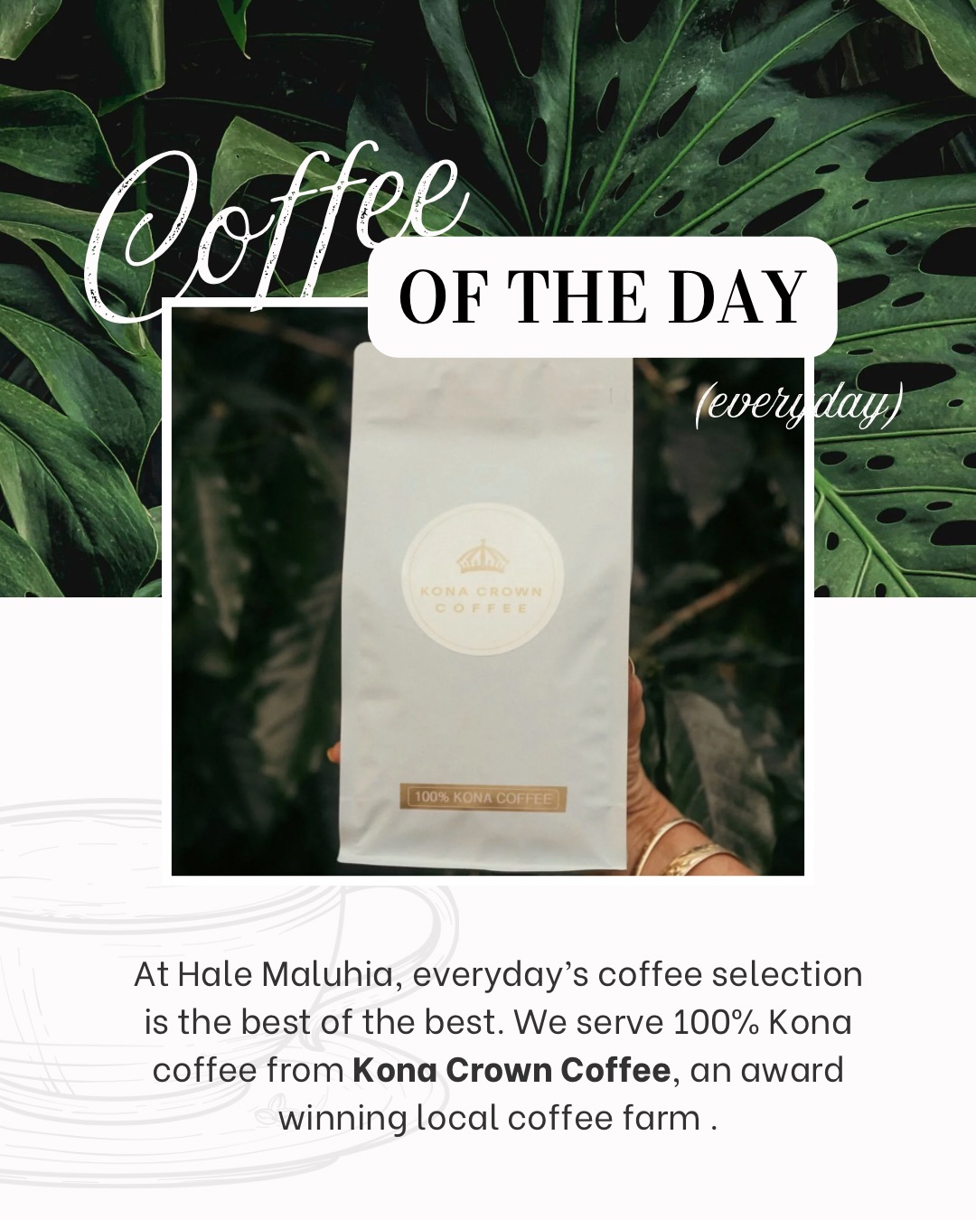 You’ll experience a truly remarkable cup of coffee from our favorite local coffee farm, Kona Crown Coffee!